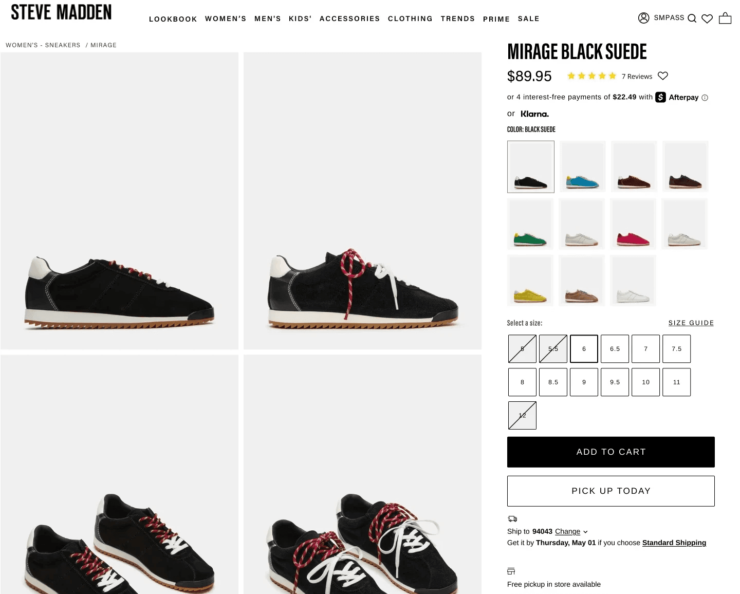 Design Thinking: I avoided big changes and reused button styles, cards, and typographic hierarchy from Steve Madden’s PDP components — making the entire thing feel frictionless and “native.”